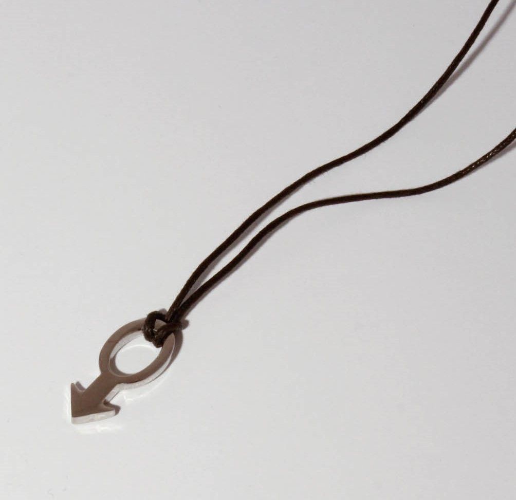 Náhrdelník, prívesok vyrobený z nerezovej ocele, rozmer 2,5 x 1 cm.