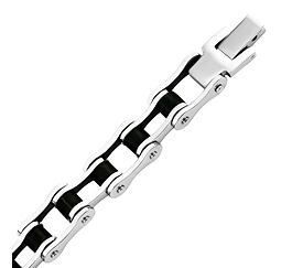 Náramok vyrobený z nerezovej ocele v nadčasovom bicolor spracovaní, dekorovaný "reťaz" dizajnom z čiernej keramiky, má bezpečnostné zapínanie. Dĺžka náramku je 22 cm, šírka očiek je 10 mm, hmotnosť náramku je 36,8 g.
