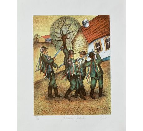 Fašiangové spevy, nezarámovaný grafický list 29/60, rozmer tlače 25x20 cm.