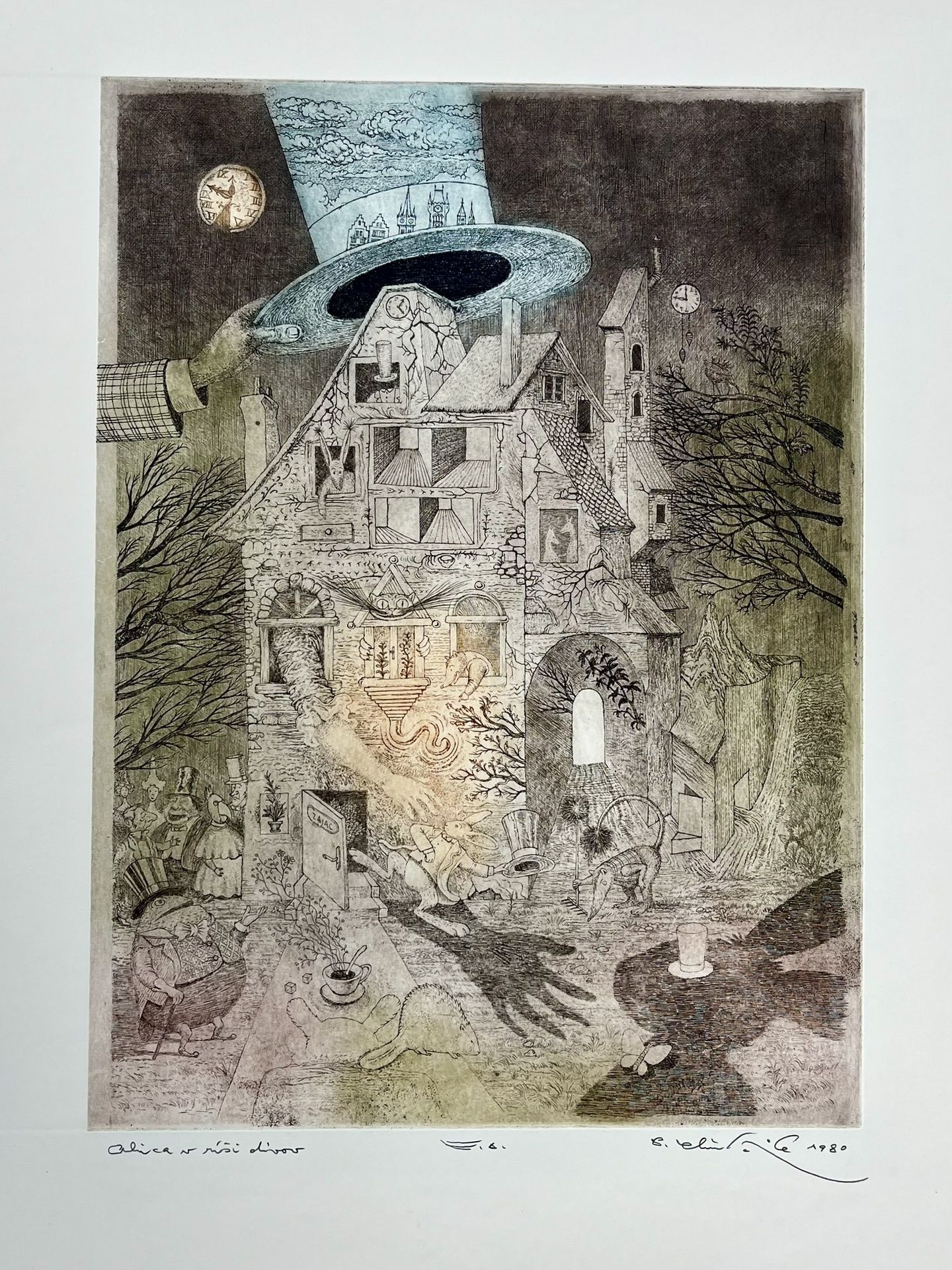 Grafický list, Alica v ríši divov. Nezarámovaný grafický list, rozmer tlače 45 x 32 cm.