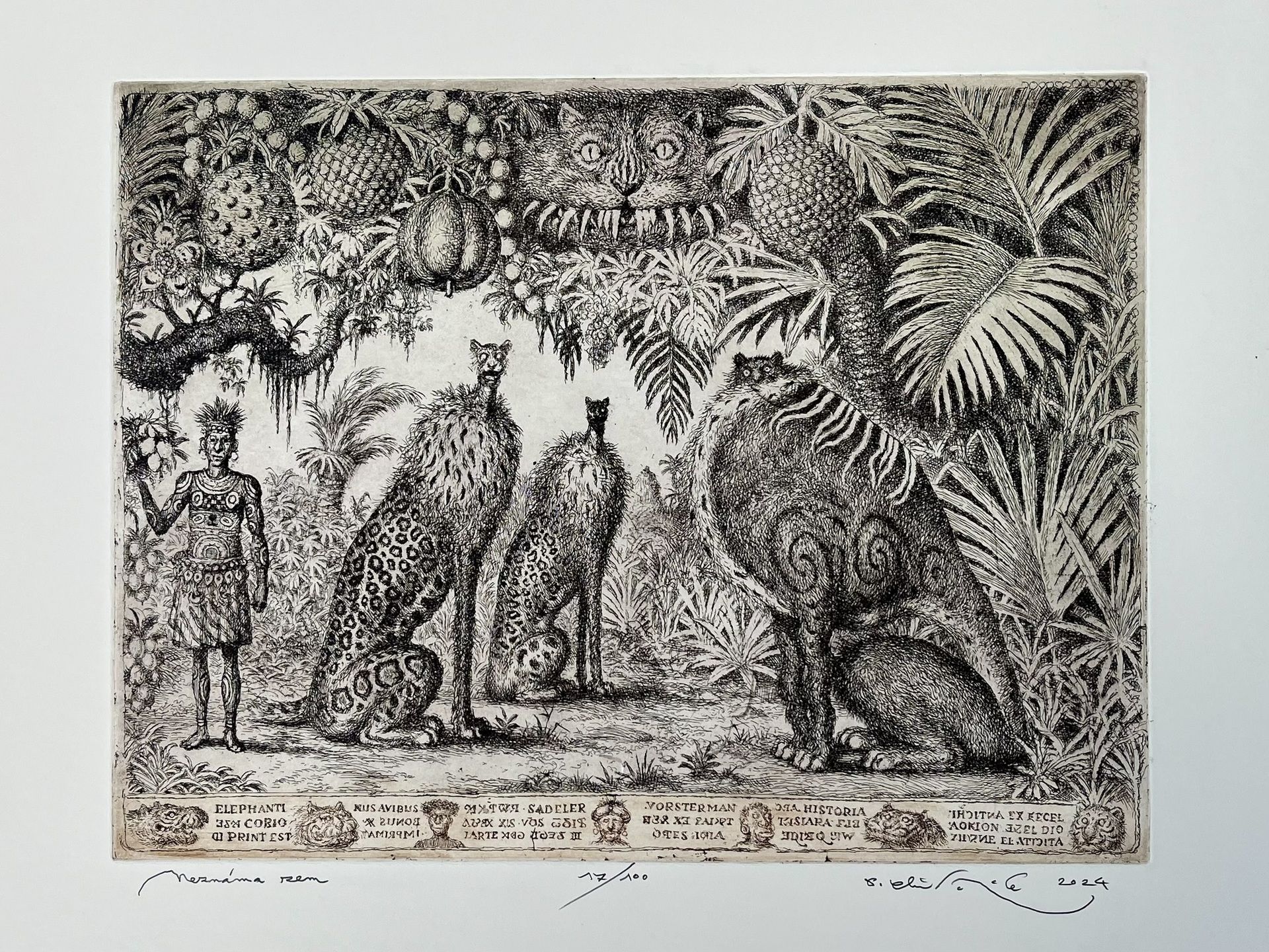 Grafický list, Neznáma zem. Nezarámovaný grafický list 17/100, rozmer tlače 30 x 39 cm.