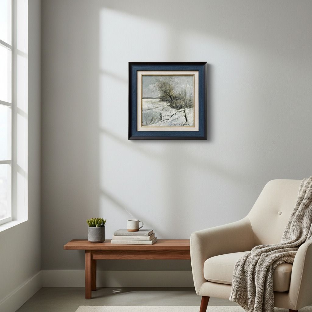 Originálna akrylová maľba, starostlivo zarámovaná v peknom ráme. Rozmer diela: 29 × 29 cm, šírka rámu: 7 cm — kompaktný formát ideálny do menších interiérov, na poličku či stenu v obývačke či pracovni.