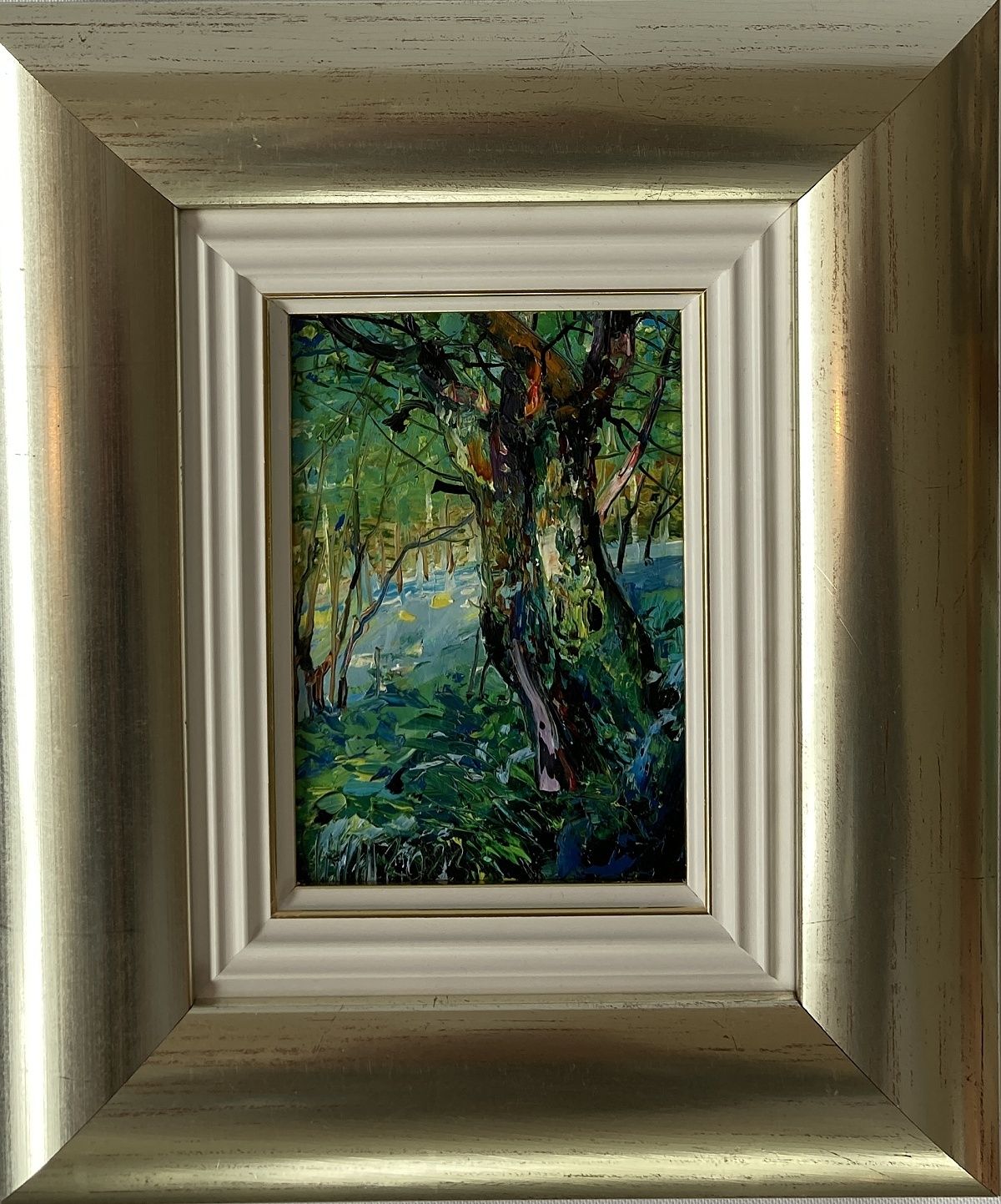 Olejomaľba na sololite, rozmer diela je 14 x 10 cm, zarámované 27 x 23 cm