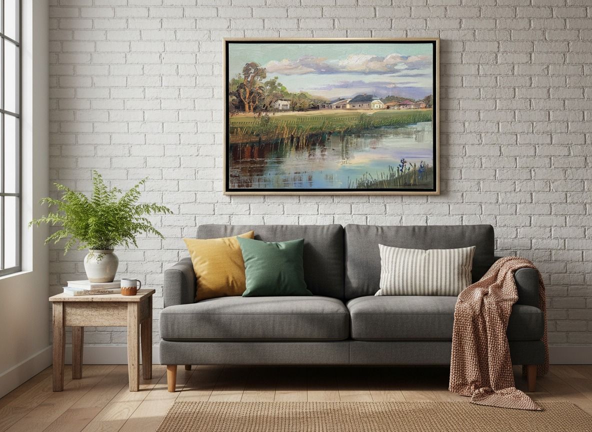 Hamuliakovo - originálna olejomaľba na plátne, zarámovaná v elegantnom ráme. Rozmer samotného diela: 50 × 70 cm, s rámom: 55 × 75 cm. Sýte farby a viditeľná štruktúra štetca vnášajú do priestoru hĺbku a výtvarnú intenzitu — ideálne do obývačky, pracovne alebo ako výnimočný darček pre zberateľa.