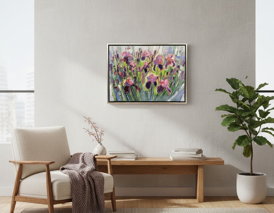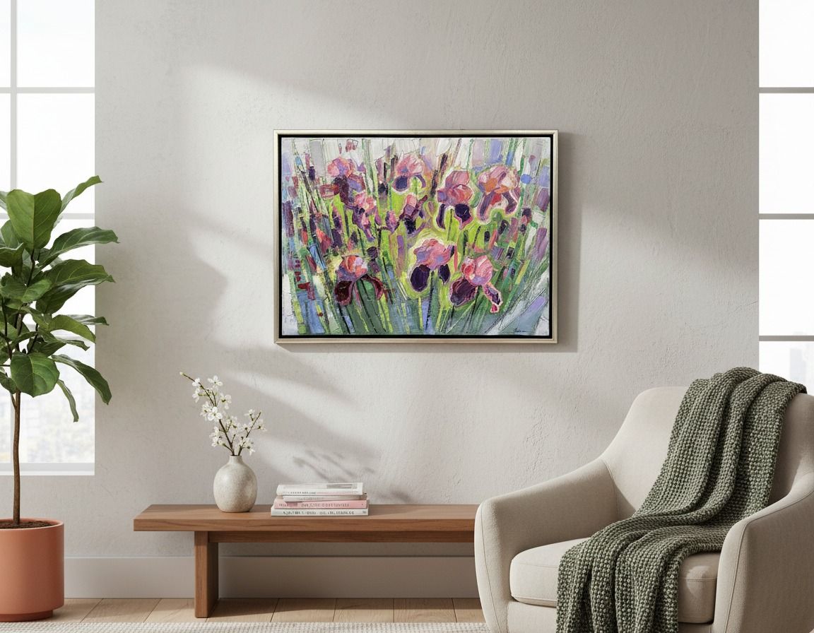 Olejomaľba zachytáva atmosféru kvetov, ktorá je vyjadrená príjemným autorovým rukopisom. Obraz je pripravený na zavesenie a skvele doplní interiér alebo reprezentatívny priestor.