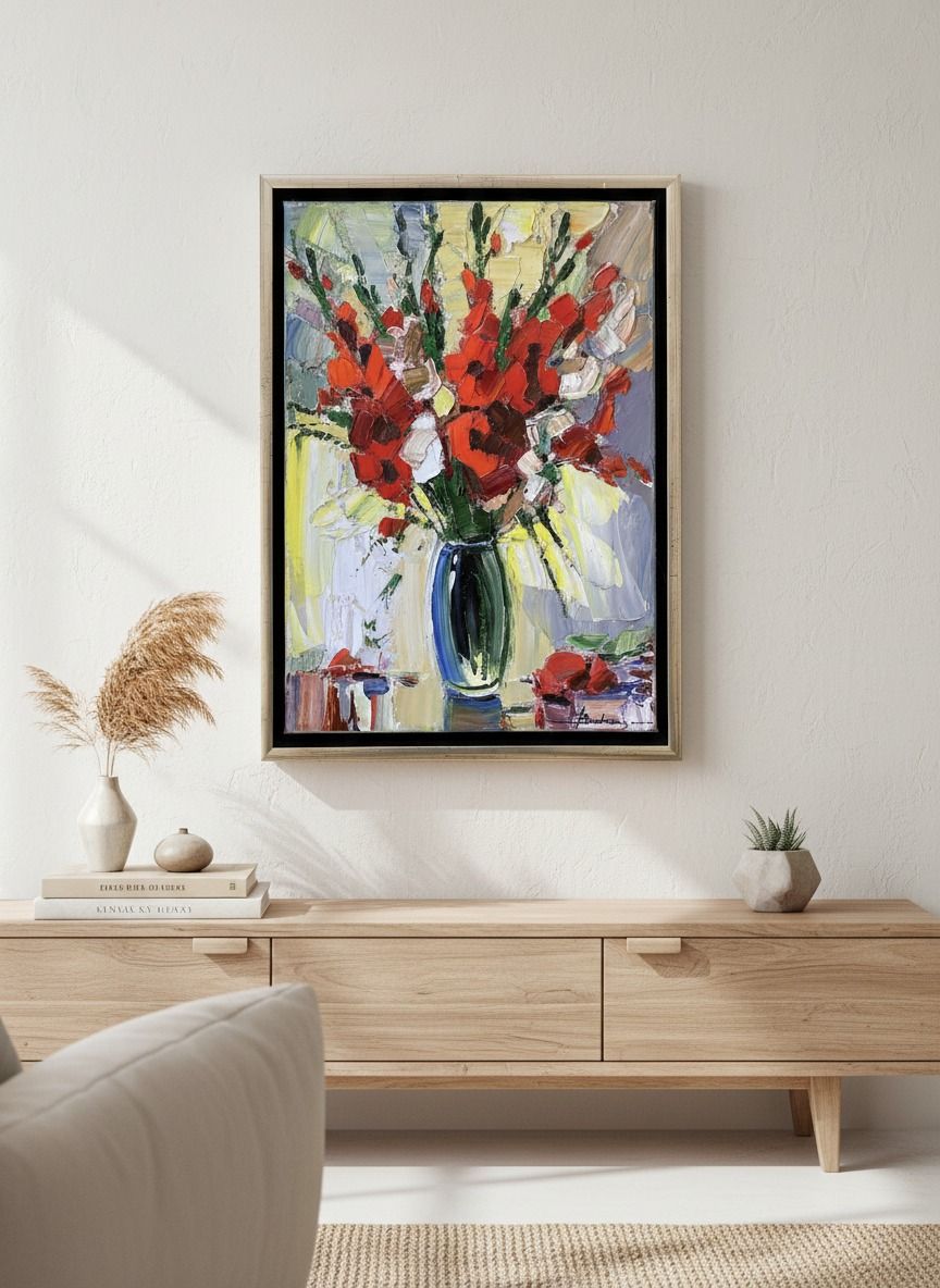 Zátišie 2 - originálna olejomaľba, rozmer plátna 50 × 35 cm, v elegantnom ráme je celkový rozmer 55 × 40 cm — obraz je hotový na zavesenie a okamžite oživí interiér. Jemná technika, jasné farby a precízne zarámovanie robia z tohto diela hodnotný doplnok do zbierky alebo výnimočný dar.