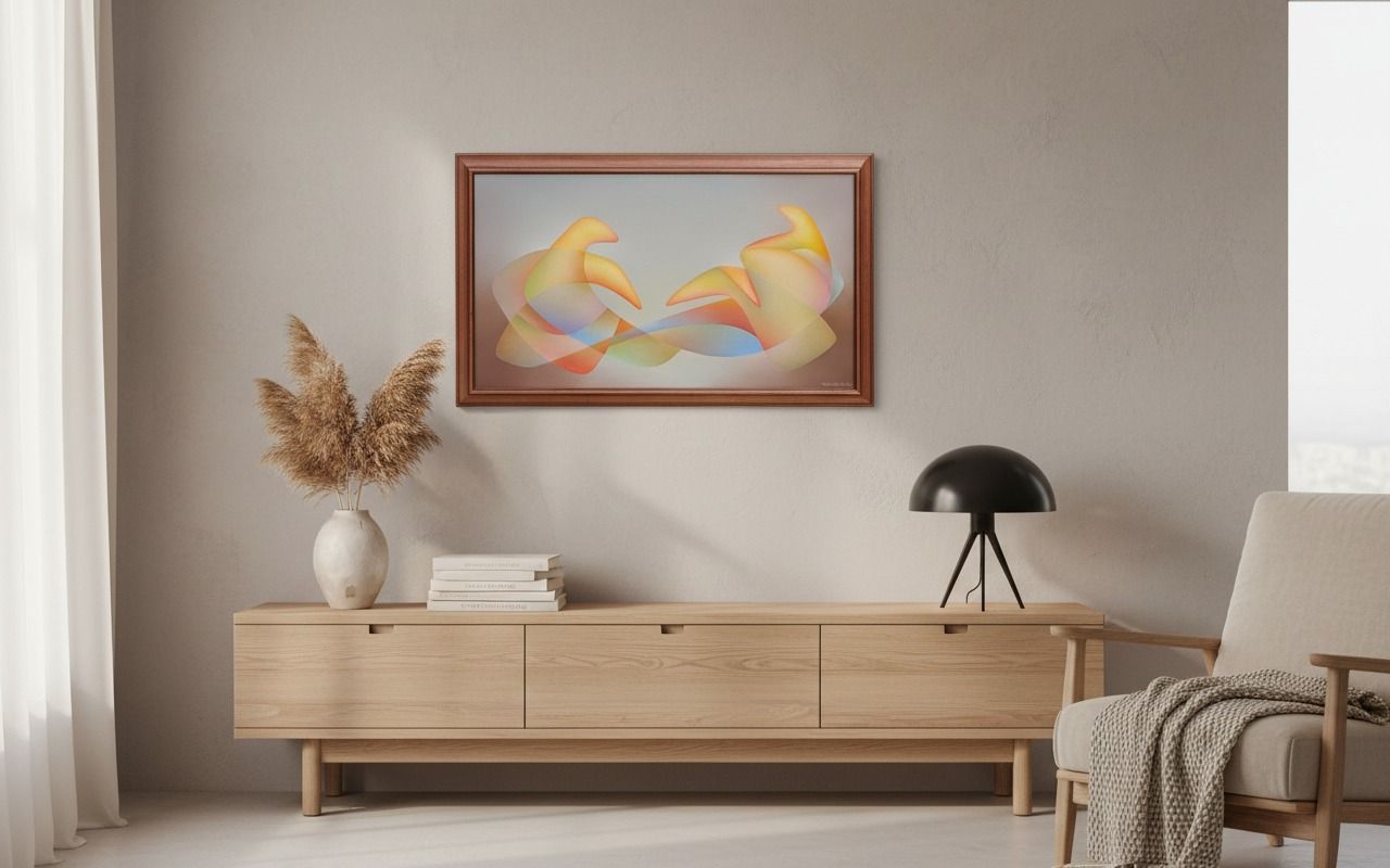 Originálna olejomaľba – plocha 45 × 80 cm, celkové rozmery s rámom 54 × 88 cm. Ručne maľovaný originál, ktorý upúta pozornosť v každom interiéri a je skvelým doplnkom do obývačky, pracovne alebo do zberateľskej zbierky. Maľba vyniká výraznou hrou farieb a dynamickou kompozíciou.