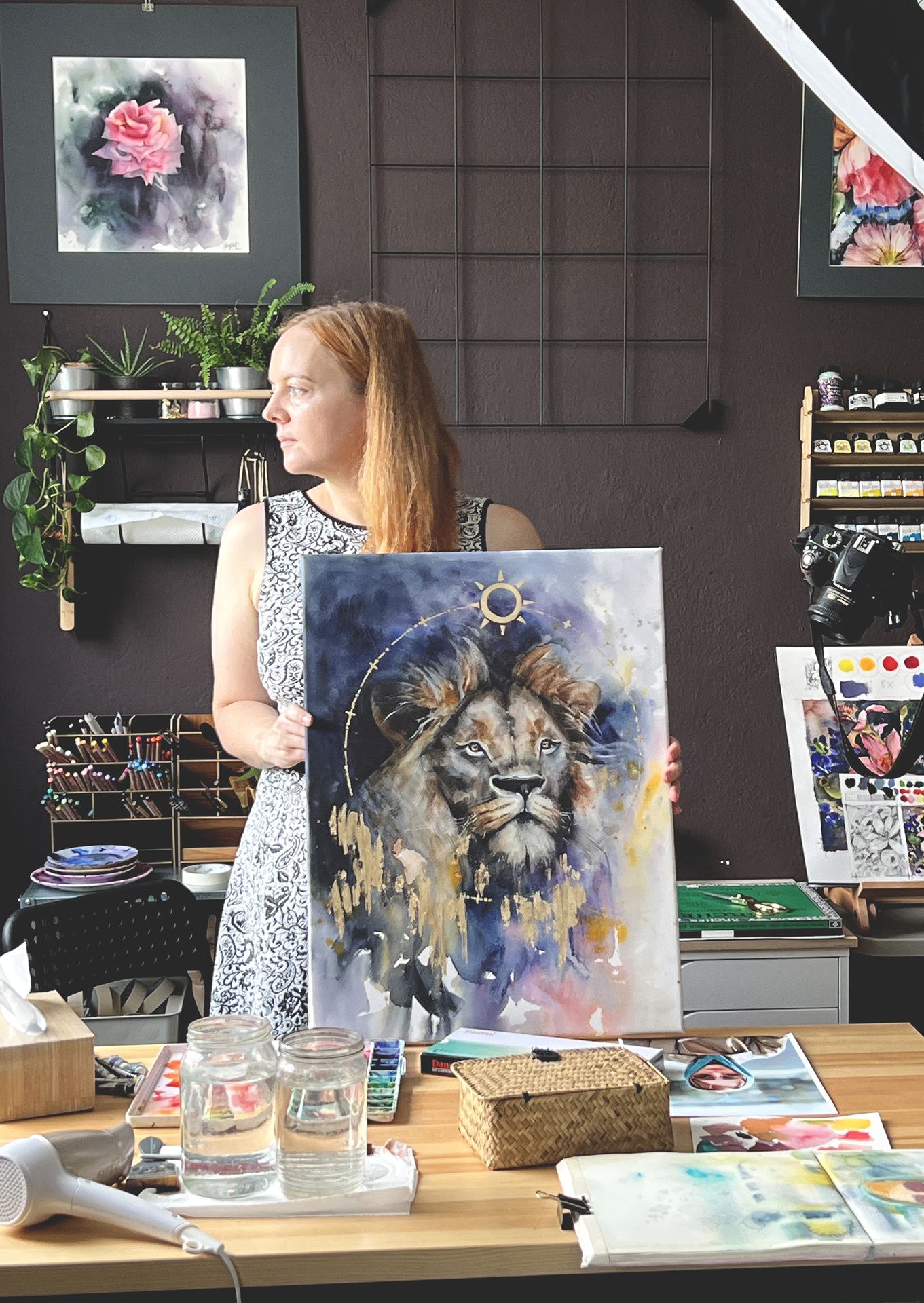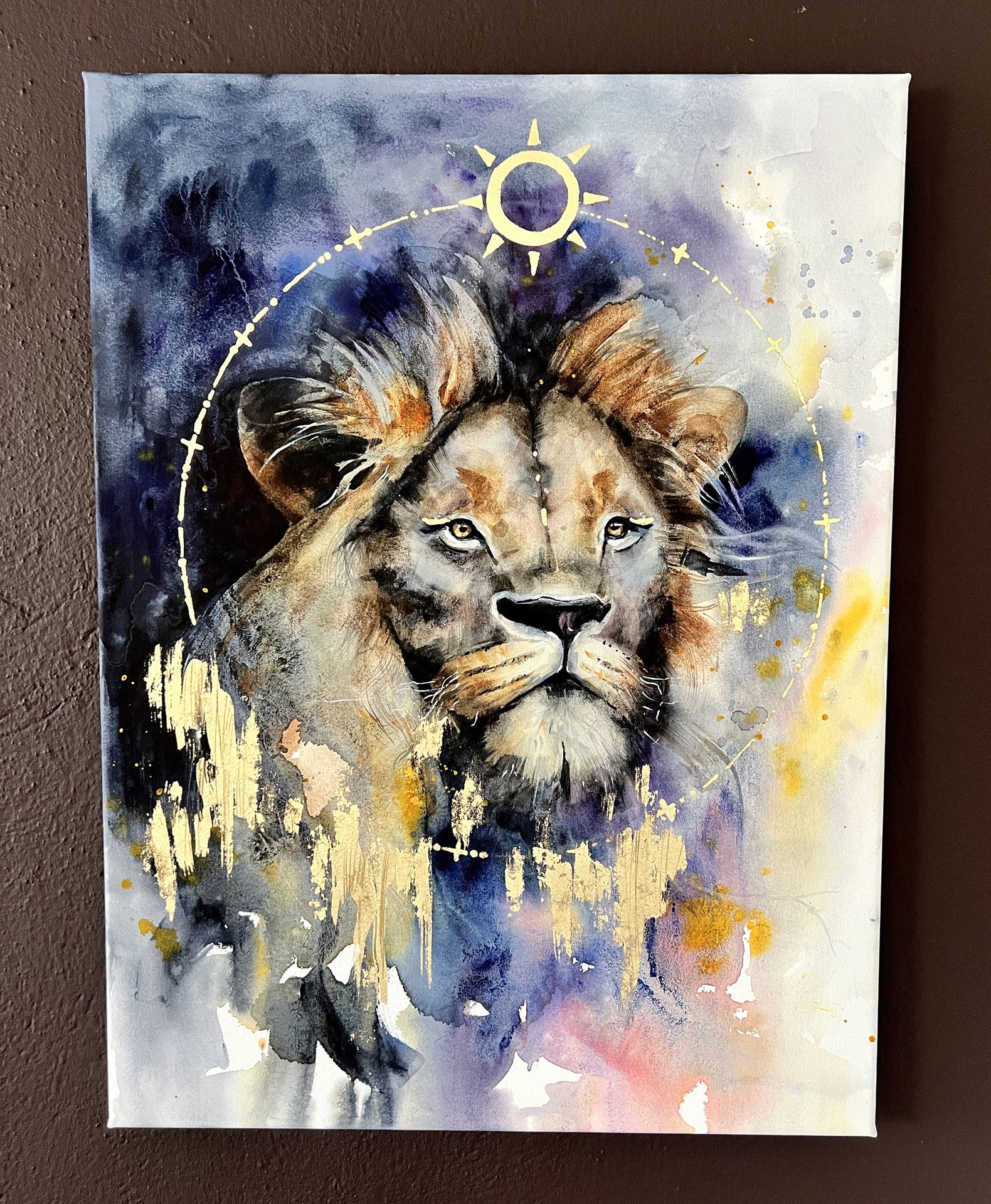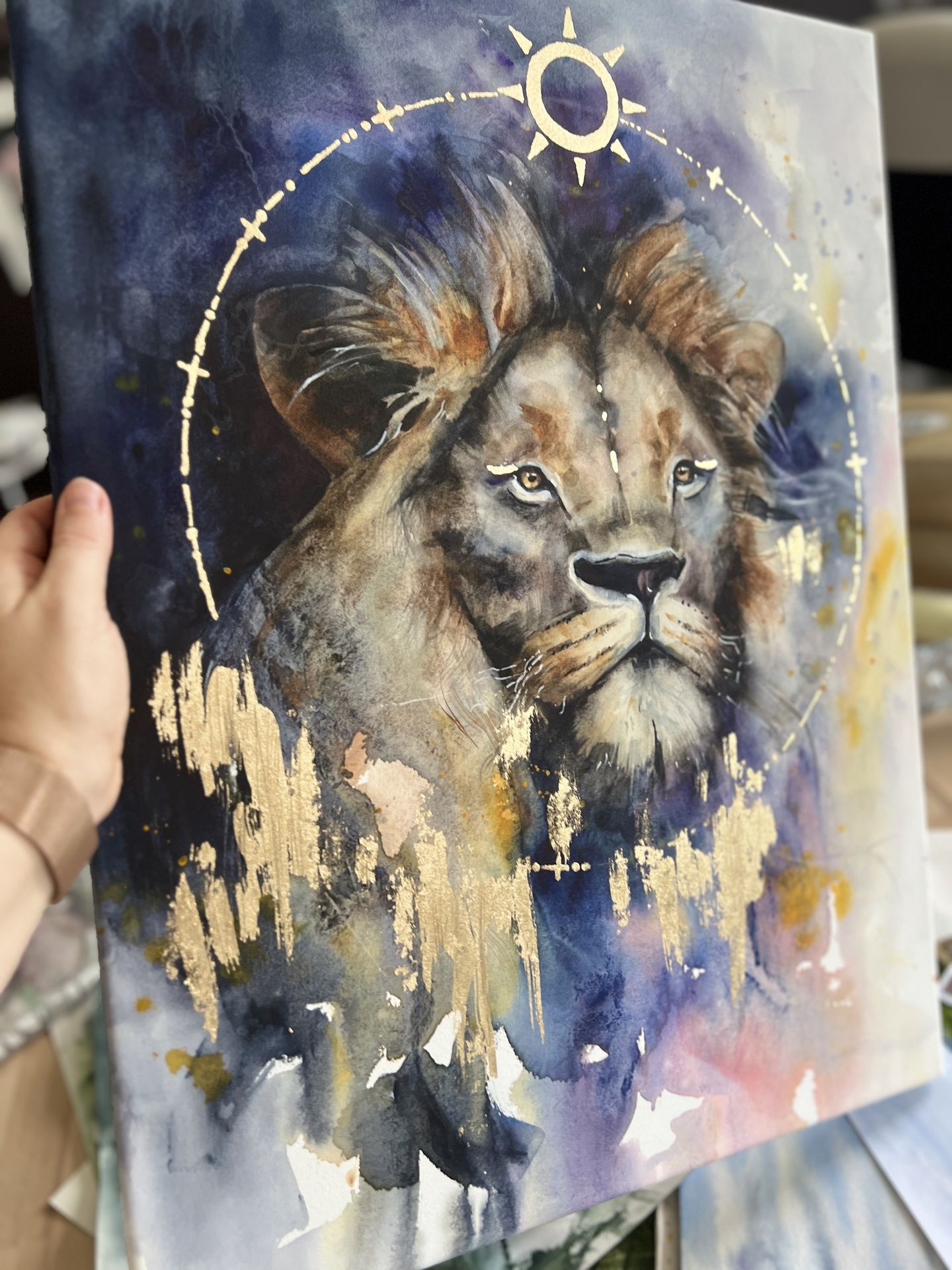 Akvarel, hlava leva na napnutom bavlnenom papieri, rozmer diela 60x45 cm, nezarámované.