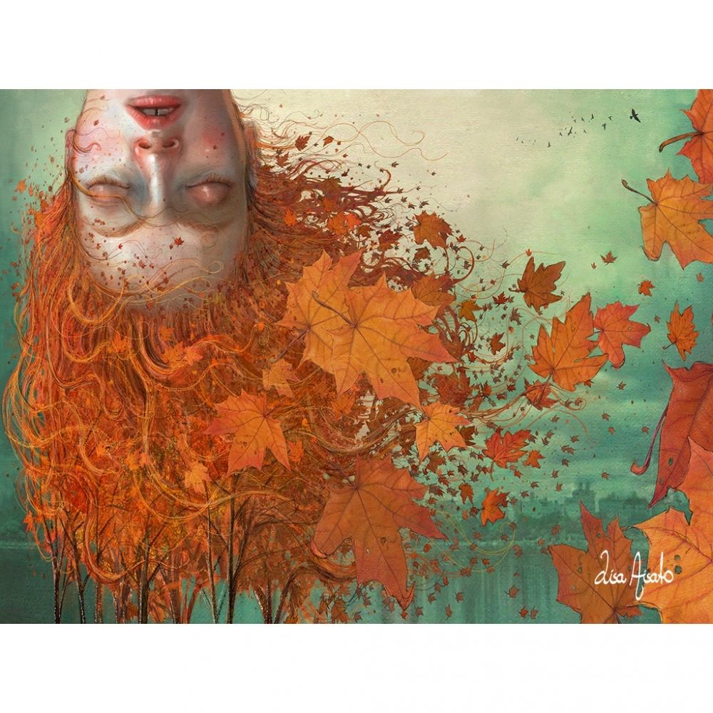 Rozkošné dielko, ktoré zohreje pri srdci. Jesenné snívanie. Rozmer diela je 29x39 cm, zarámované pod sklom, rozmer je 47x57 cm.