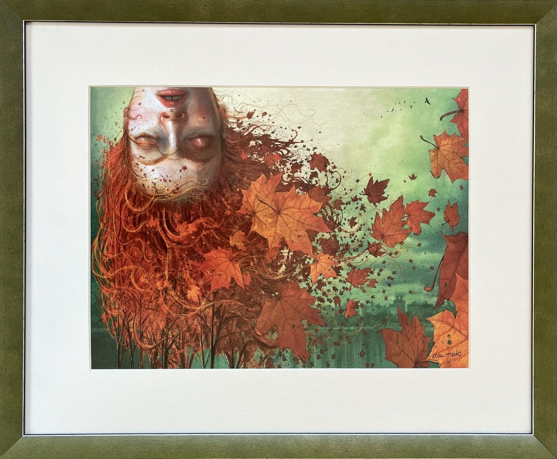 Rozkošné dielko - autorský print, ktoré zohreje pri srdci. Jesenné snívanie. Rozmer diela je 29x39 cm, zarámované pod sklom, rozmer je 47x57 cm.