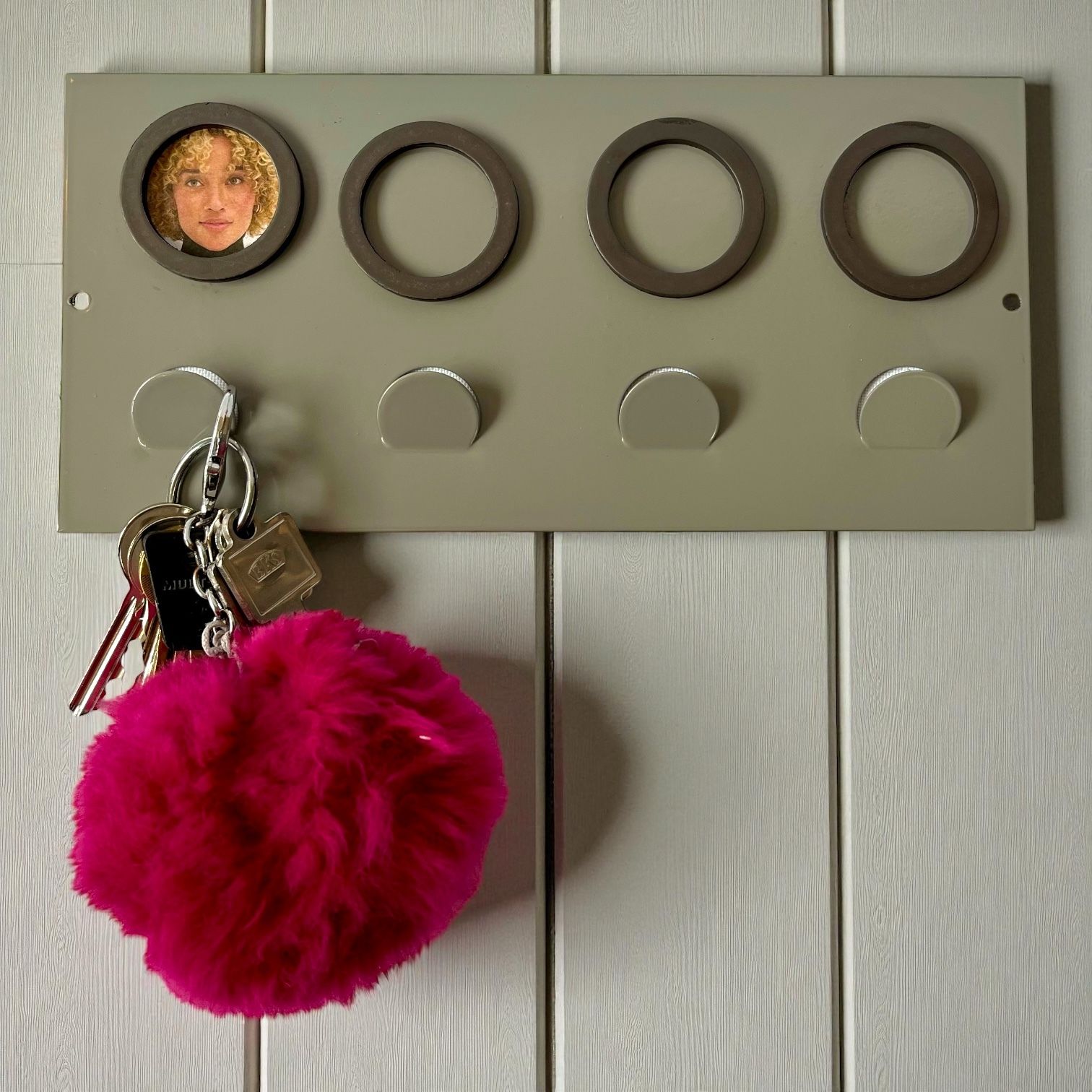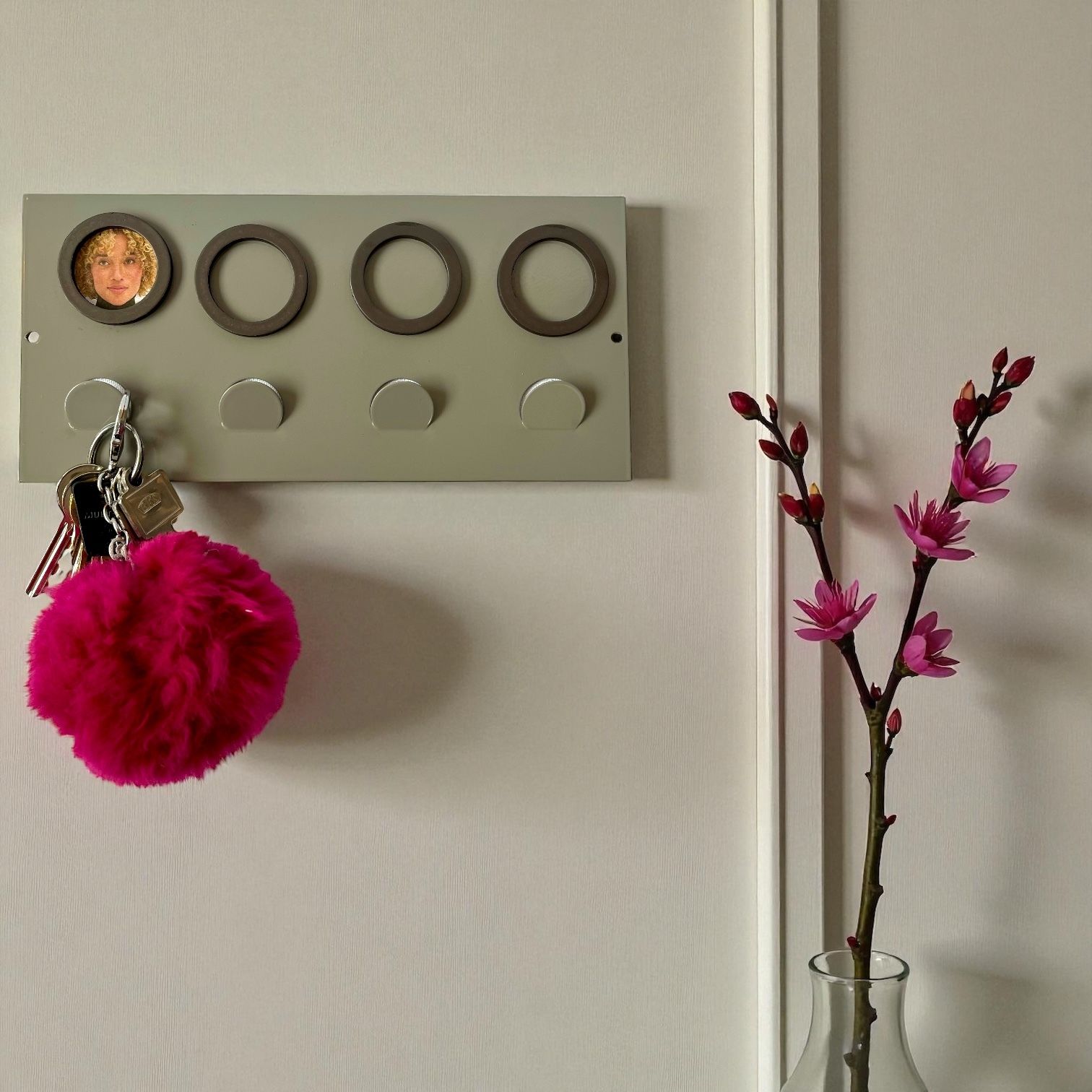 Vešiak Vám pomôže urobiť poriadok s kľúčami, vždy budú poruke.  Rozmer 12 x 25,5 cm, magnetický krúžok má priemer 4,5 cm.