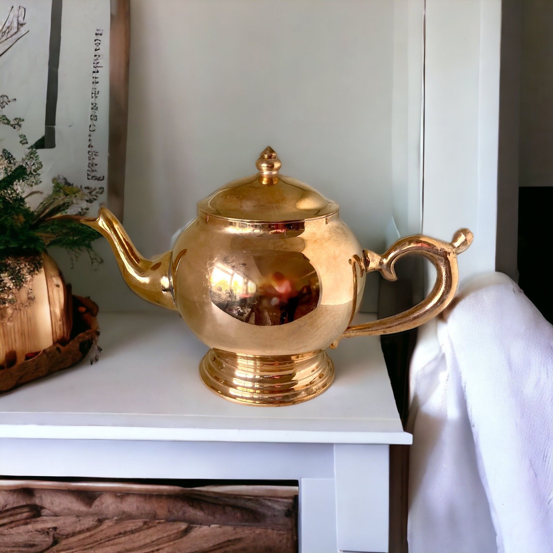 Mosadzná čajová súprava, čajník, cukornička a nádobka na mlieko.
