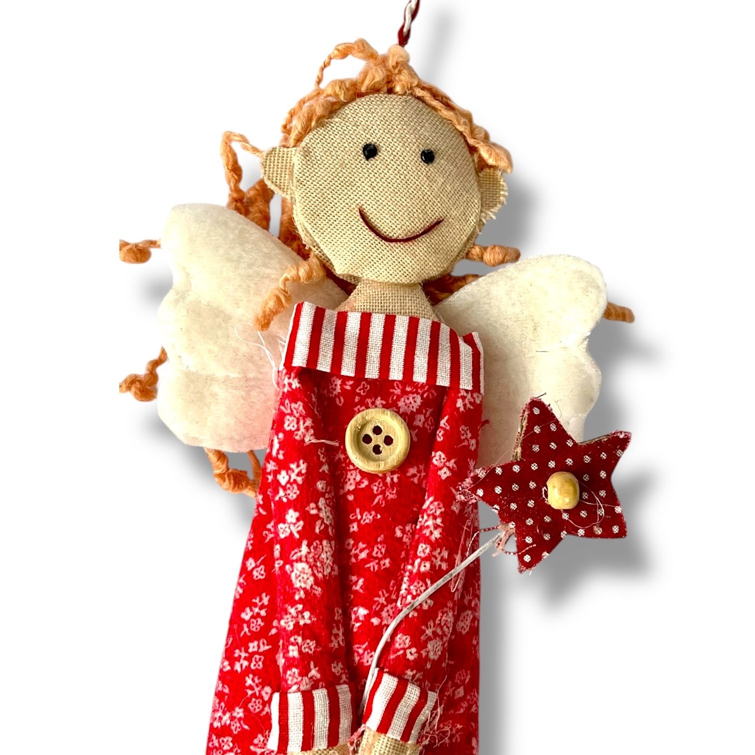 Anjelik - dievčatko ako ozdoba na vianočný stromček ušitý z bavlnenj látky s hviezdou na paličke. Výška 25 cm.