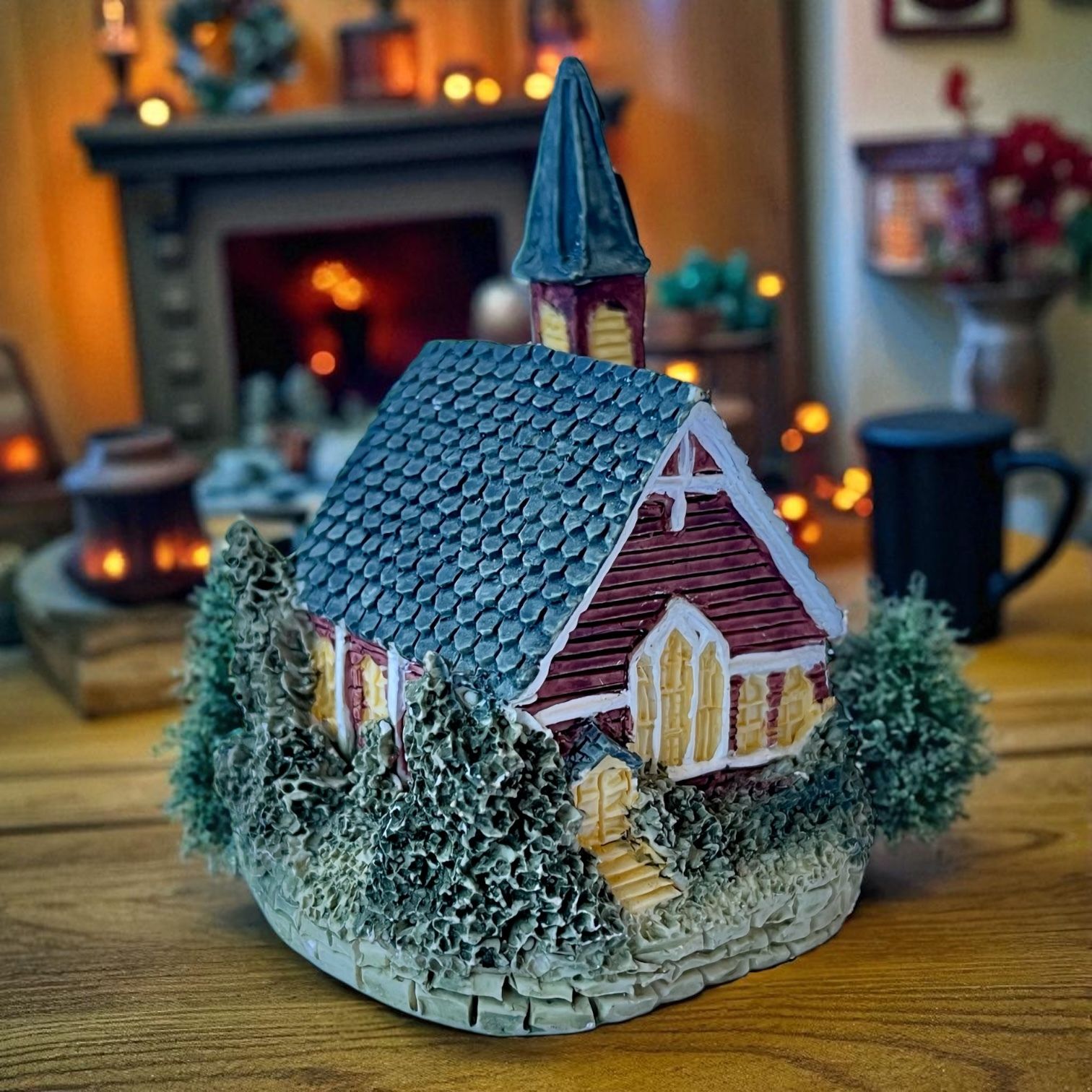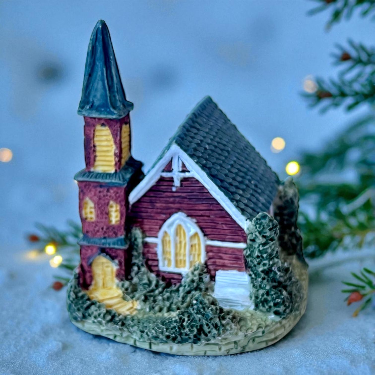 Malý kostolík zo sádry ako vianočná dekorácia, výška 8 cm.
