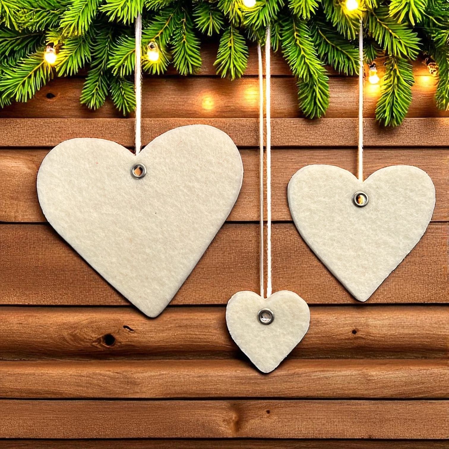 Ozdoba na stromček alebo okno z plste, biele alebo červené v troch veľkostiach.