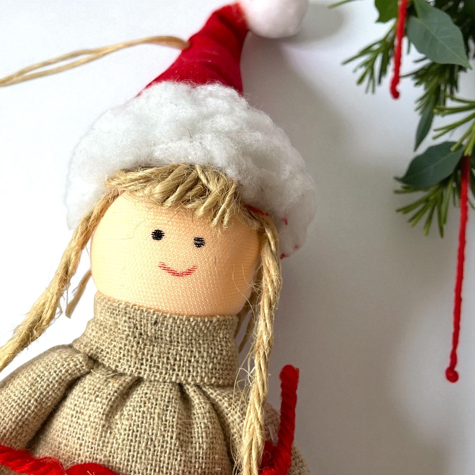 Vianočná ozdoba - ručne šitá bábika na zavesenie