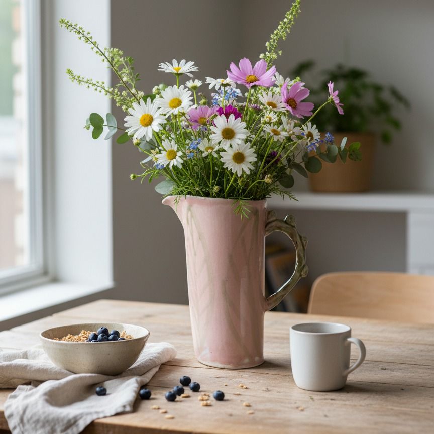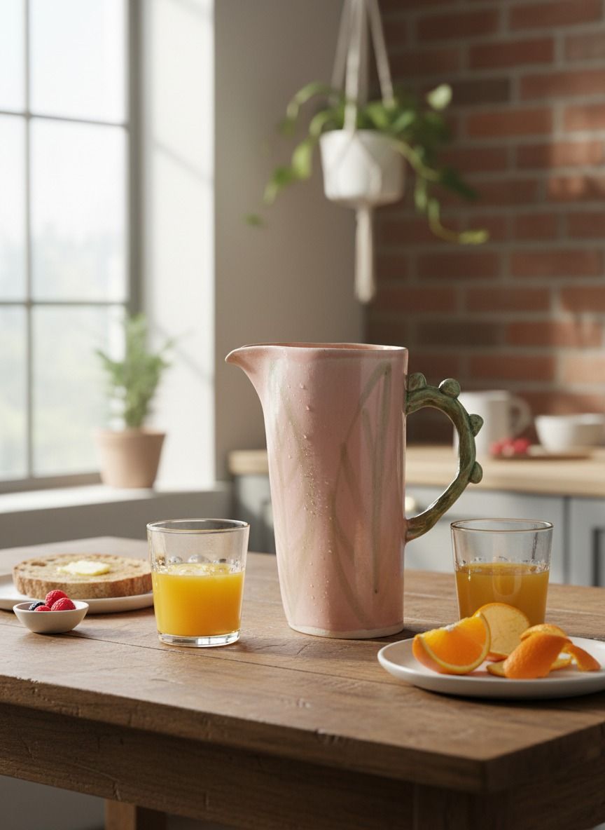 Rúžový dždán so zelenými listami s veľkým uchom z dielne InVivo. Výška 17 cm.