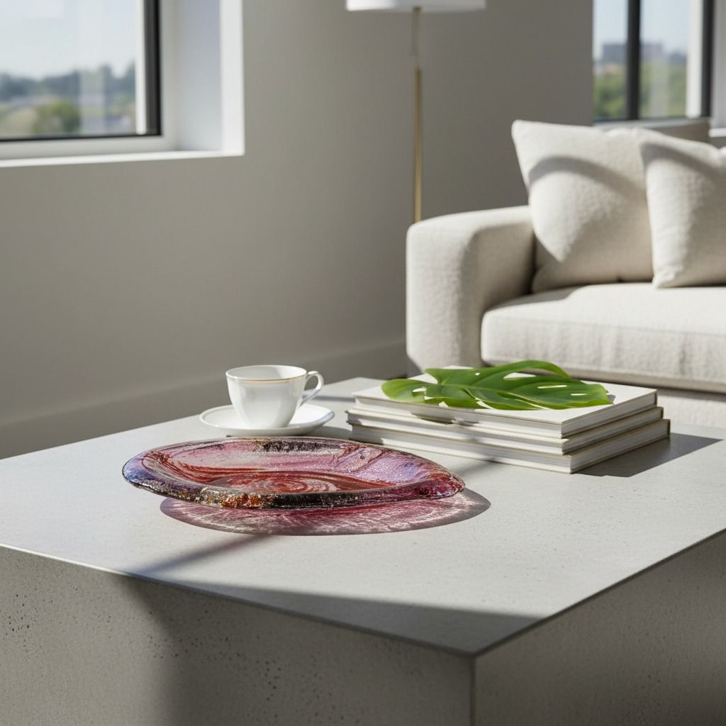 Elegantná oválna sklenená misa z líhaného skla od výtvarníka Juraja Slobodu — jedinečný dekoračný aj praktický kúsok do vášho interiéru. Misa má rozmery cca 40 × 57 cm a predávame ju v peknej, saténom vystlanej kazete, pripravená na darovanie alebo okamžité vystavenie.