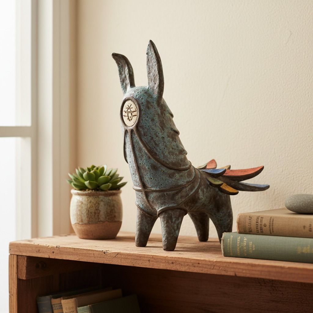 Autorská keramická soška — moderný koník v dymovo-modrom prevedení, ktorý okamžite upúta pozornosť. Ručne vyrobený dielo od Andreja Friča, výška 24 cm, ideálny ako dekorácia na poličku, stôl alebo originálny darček pre milovníkov dizajnu. Každý kus je jedinečný a krásne doplní moderný interiér alebo zbierku umenia.