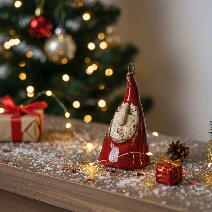 Veselý keramický Mikuláš z dieľne In Vivo určený na zavesenie na stromček, alebo môže stáť na poličke. Výšku má približne 6 cm, je z pálenej hliny s glazúrou. Máme viac kusov, každý je trošku iný.