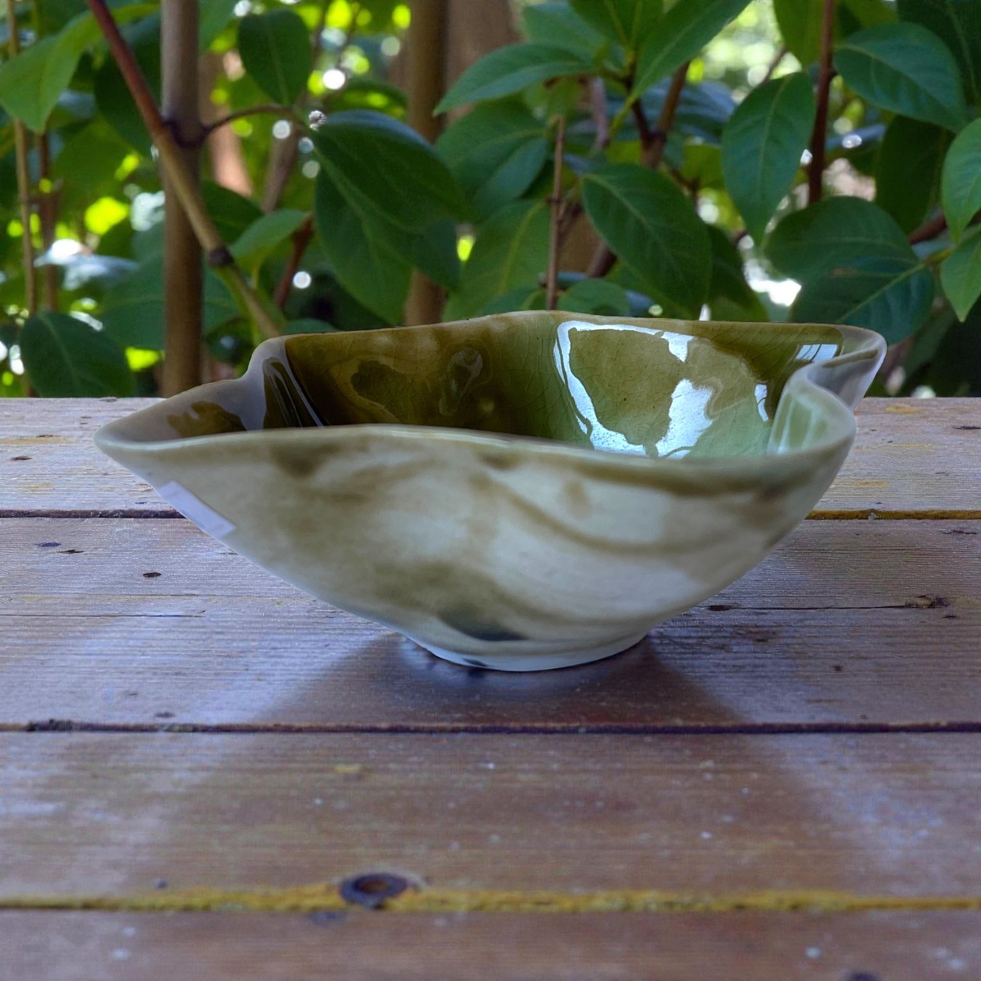 Miska keramická päťcípa zeleno hnedá