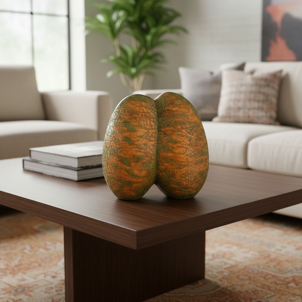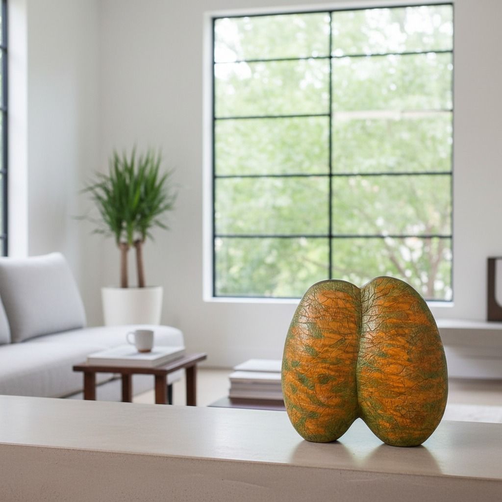 Autorská keramická plastika vyrobená zo šamotu, ručne tvarovaná a glazovaná s dôrazom na detail. Originálny objekt vhodný ako umelecký doplnok do interiéru alebo ako netradičný darček. Rozmery: 35 × 35 × 12 cm.