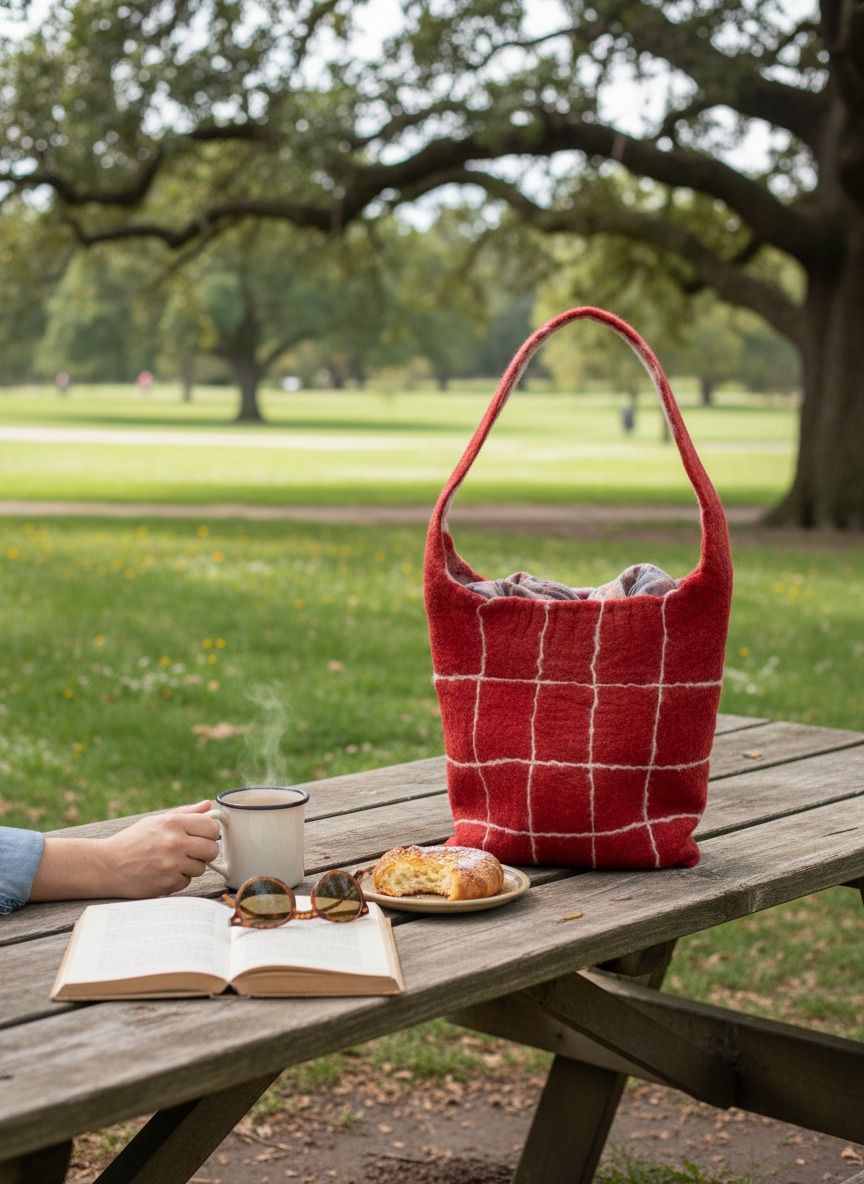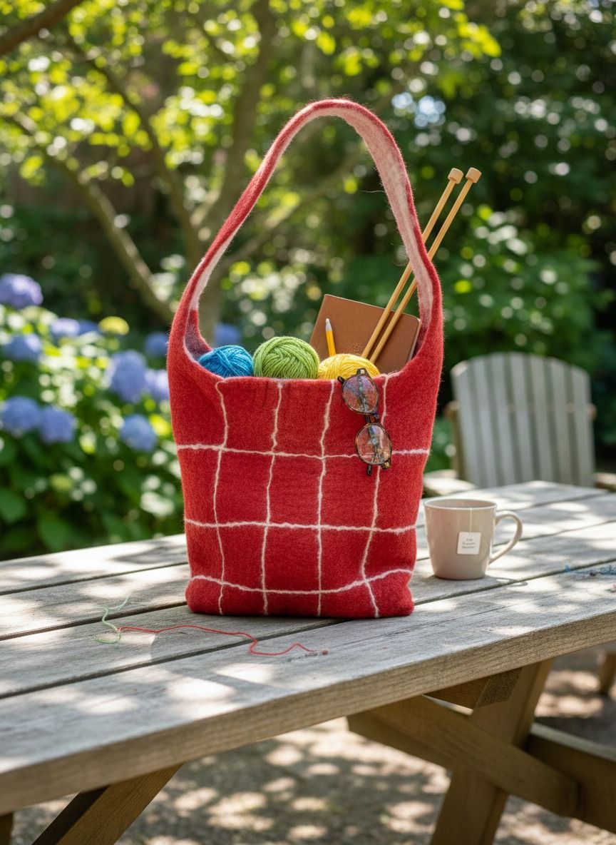 Ručne vyrobená plstená taška od sestier Gry a Sif v sýtej červenej farbe, rozmery 36 × 30 cm. Každý kus je originál — jemná textúra plste, starostlivé spracovanie a nadčasový dizajn, ktorý pekne doplní váš každodenný aj spoločenský outfit. Ideálna ako praktický štýlový doplnok alebo originálny darček. Doplnková peňaženka z rovnakého materiálu (11 × 15 cm) je k dispozícii samostatne, vďaka čomu si môžete vytvoriť zladený set.