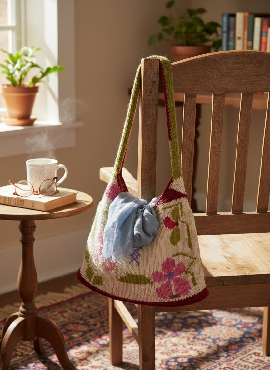 Ručne uštrikovaná taška na plece z hrubej vlny od sestier Gry a Sif – jednoduchý a teplý doplnok do každodenného života. Rozmery cca 35 × 40 cm, priestranná na knihu, peňaženku alebo malé nákupy. Každý kus je originál, drobné variácie v štruktúre a farbe sú prirodzeným prejavom ručnej výroby. Odporúčame šetrné ručné pranie a sušenie na vzduchu.