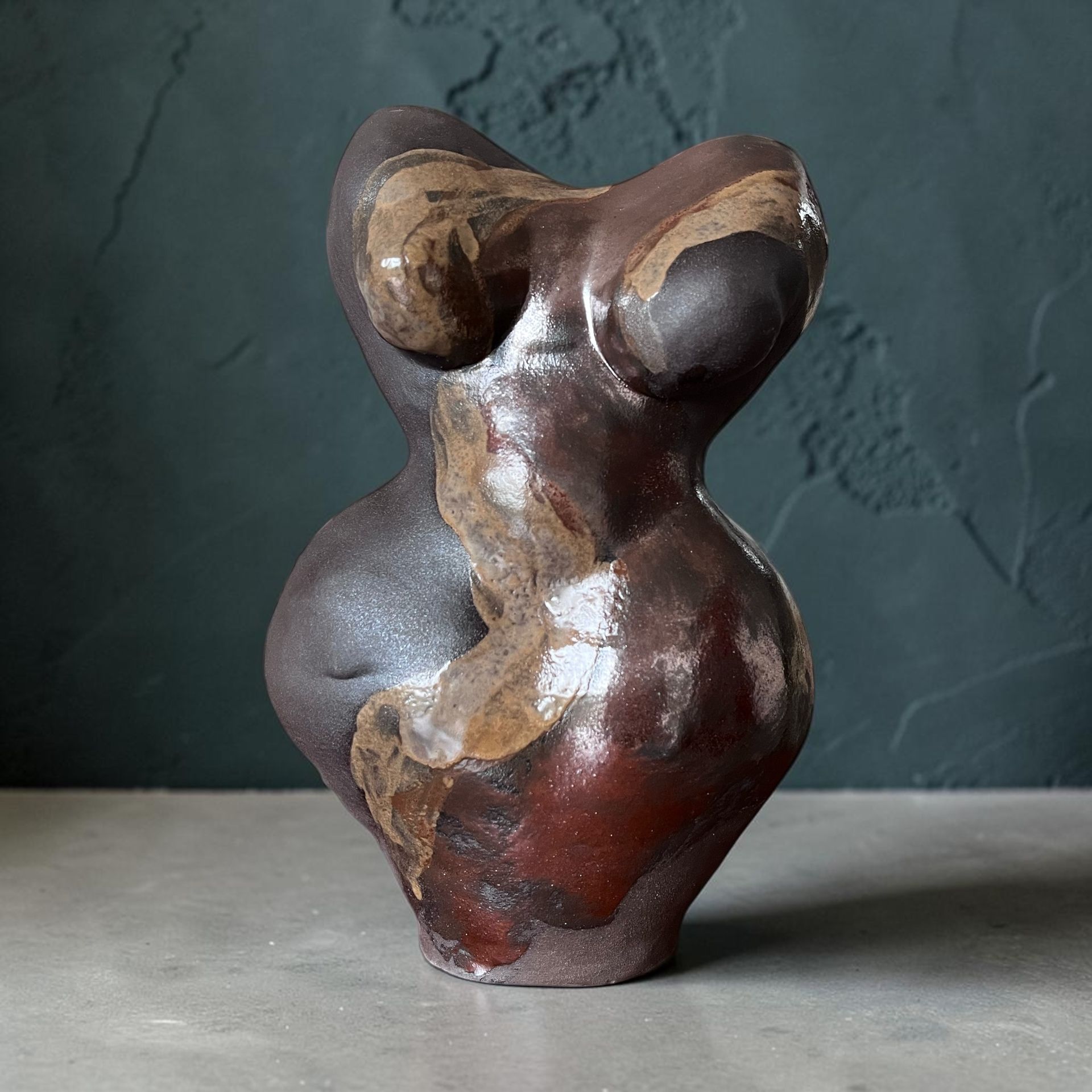 Plastika, hnedá glazovaná váza Venuša. Výška 25 cm.